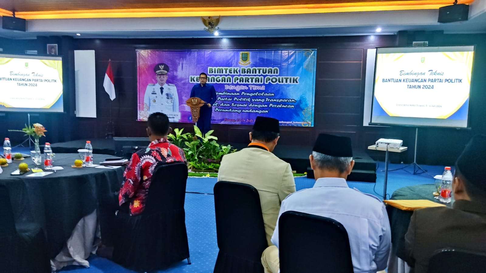 Foto: Mas Pj Ali Kuncoro saat membuka acara Bimtek keuangan parpol 2024
