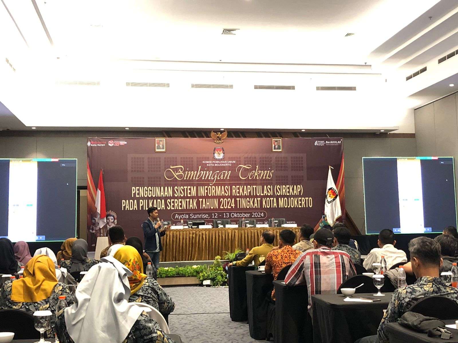 Indonewsdaily.com, Mojokerto — Komisi Pemilihan Umum (KPU) Kota Mojokerto mengelar simulasi dan bimbingan teknis (Bimtek) bagi PPK di Ballroom Hotel Ayola, Jalan Benteng Pancasila, Magersari, Kota Mojokerto, Minggu (13/10/2024).