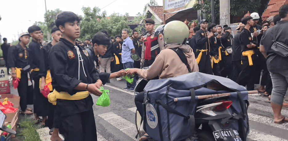 Setelah kirab selesai, acara berlanjut dengan pembagian takjil kepada masyarakat. Kegiatan sosial ini berlangsung di halaman Kantor Kelurahan Meri, di mana Ketua DPRD Kota Mojokerto turut serta membagikan paket berbuka puasa bersama para pesilat.