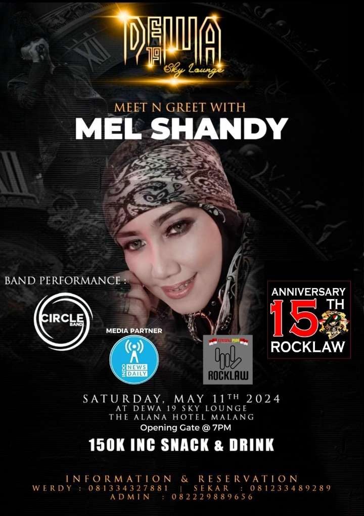 Dalam acara Meet n Greet ini, para penggemar tidak hanya bisa bertemu dan berbincang langsung dengan Teh Mel ( panggilan akrab Mel Shandy ), merekapun dapat bernyanyi bersama Lady Rocker ternama Indonesia ini dan dalam acara ini juga dimeriahkan oleh penampilan dari band lokal terbaik kota Malang CIRCLE band dan Rocker serta Lady Rocker dari Malang dan Surabaya.