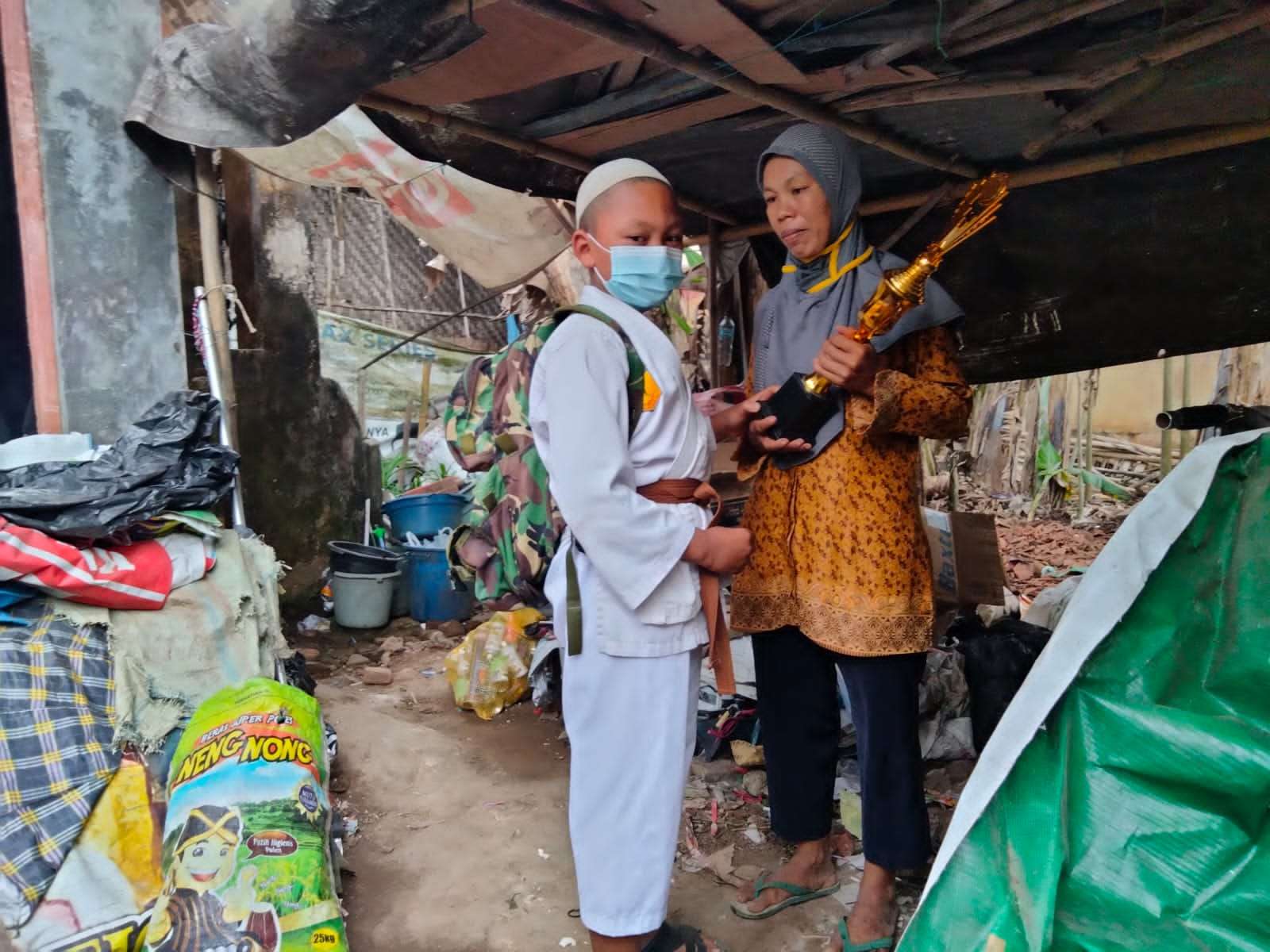 “Ya saya kan kerjanya mengumpulkan rongsokan. Biasanya Ipul itu ikut kayak kemarin pas kejuaraan pulangnya ya saya nyari di gang-gang Kota sampai Kabupaten sama Ipul. Dia pun gak masalah. Dia berbakti sama orang tuanya,” tutur dia.