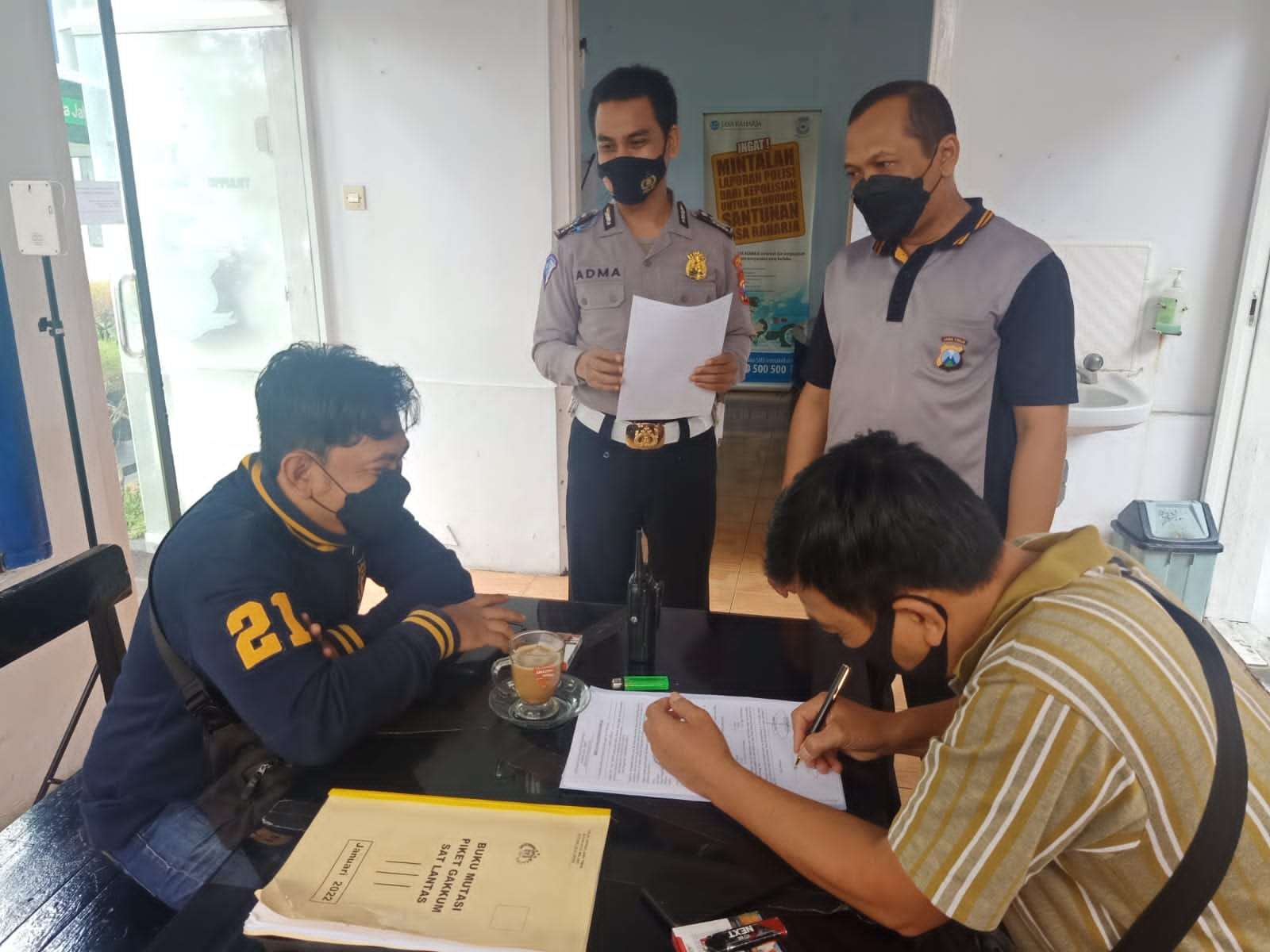 Dalam lanjutan kegiatan pengendalian mobilitas pada Jum’at lalu (4/2/2022) sekitar pukul 21.00 WIB di Jl. Soekarno Hatta dekat Bundaran Patung Pesawat Kota Malang didapati pelanggar lalu lintas yang tidak menggunakan helm dan di lakukan pemeriksaan,hasil pemeriksaan di dapati seorang pria berusia 27 Tahun dengan inisial AA di duga kuat melakukan pemalsuan dokumen berupa KTP dan SIM C.