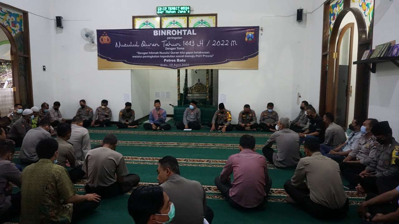 Peringatan Nuzulul Quran di Polres Batu kali ini mengambil tema “Dengan Hikmah Nuzulul Quran Kita gapai Ketaqwaan Melalui Peningkatan Kepedulian Sosial Menuju Polri Presisi”.