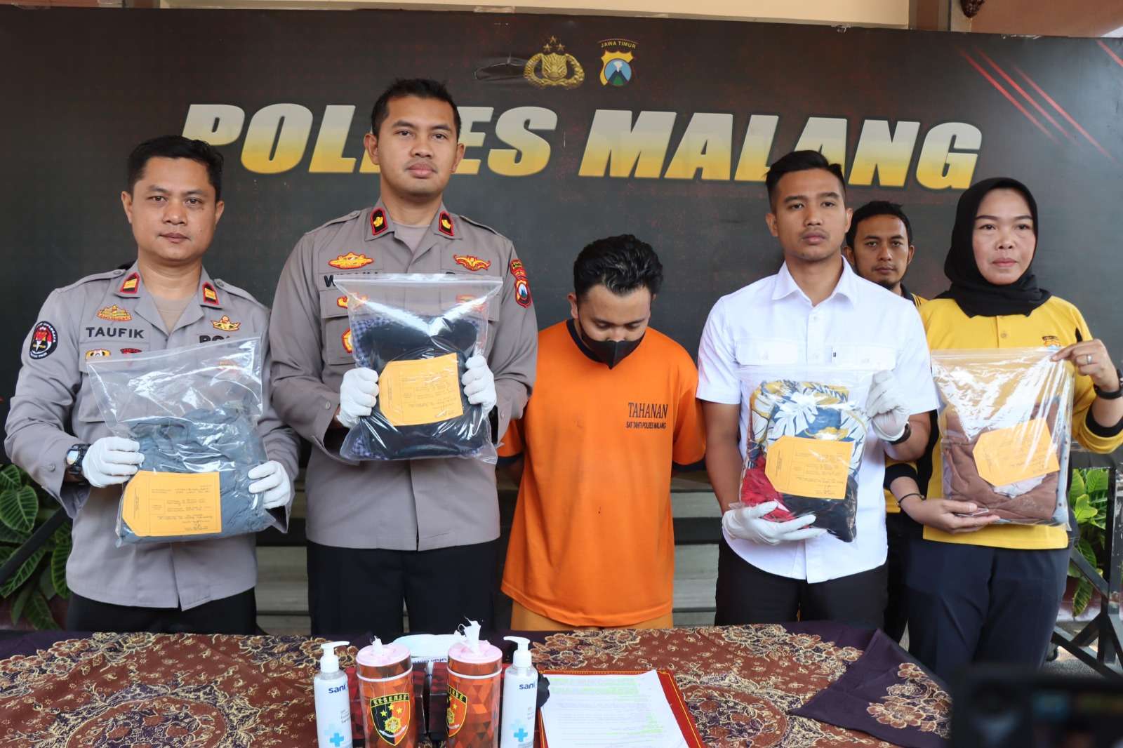 Wakapolres Malang, Kompol Wisnu S Kuncoro, dalam konferensi persnya, mengungkapkan bahwa pelaku yang berhasil diamankan adalah seorang pria berinisial IS (32), yang berprofesi sebagai guru ngaji dan berasal dari Desa Srigading, Kecamatan Lawang, Kabupaten Lawang.
