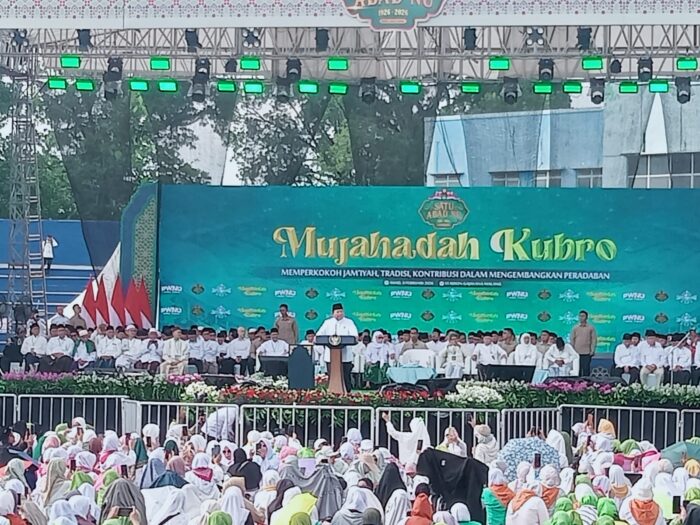 “Kita telah membuktikan bahwa kita tidak mau tunduk pada bangsa lain yang ingin menjajah bangsa kita. NU selalu memberikan contoh untuk menjaga persatuan, dan itulah sejarah,” ujar Presiden Prabowo.