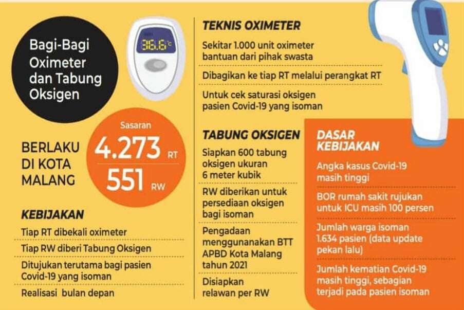 “Beberapa waktu yang lalu kami menerima informasi bahwa Walikota Malang akan memberikan 1 tabung oksigen ukuran 6 meter kubik untuk tiap RW dan tiap RT akan diberikan Oximeter namun pada kenyataannya sampai saat ini hal itu tidak pernah terealisasi padahal dua fasilitas tersebut sangat penting bagi kami untuk membantu warga kami yang positif covid-19 apalagi untuk mereka yang tidak mampu membeli tabung oksigen,” katanya, Rabu (25/8/2021).