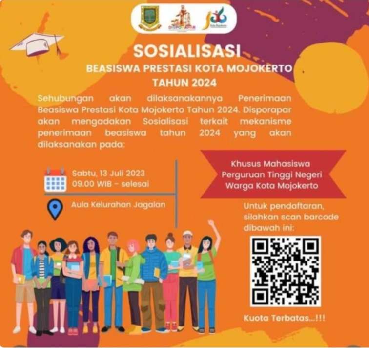 Pemerintah Kota Mojokerto kembali membuka pendaftaran calon penerima beasiswa bagi mahasiswa berprestasi tahun 2024.
