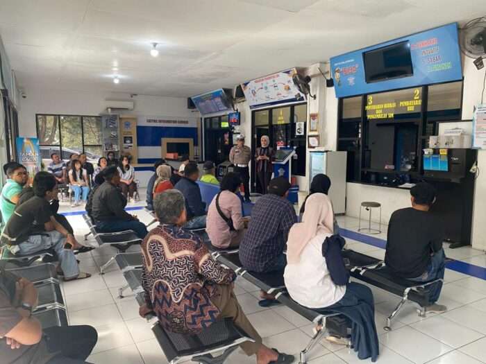 indonewsdaily.com, Batu- Dalam rangka meningkatkan kesadaran berkendara kepada masyarakat, serta pelaksanaan implementasi program dari Kakorlantas Mabes Polri, yaitu Polantas Menyapa, Satpas Polres Batu bersama Unit Kamsel Polres Batu melaksanakan kegiatan sosialisasi tentang keselamatan berkendara kepada para pemohon SIM, yang bertempat di ruang tunggu Satpas SIM, Mapolres Batu.