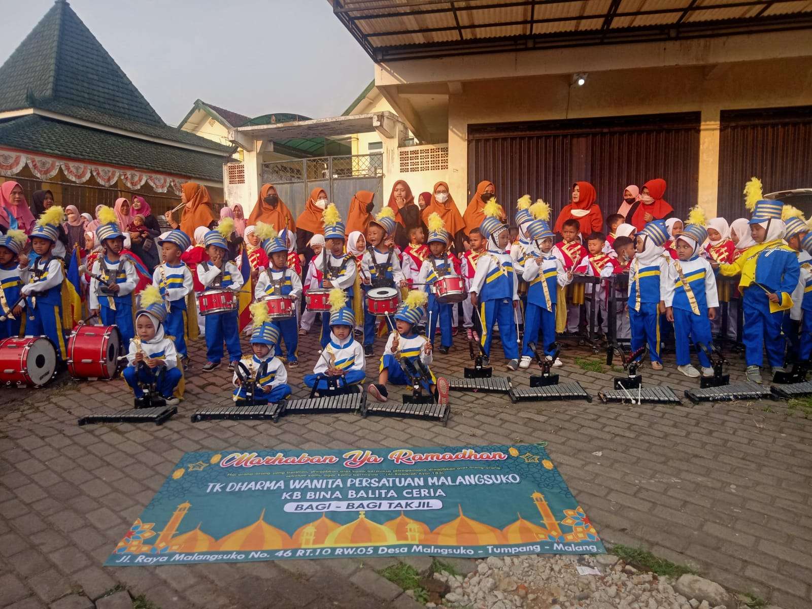 Selain membagi takjil untuk para pengguna jalan, acara juga di meriahkan juga dengan penampilan drumband dari anak-anak TK Dharma Wanita Persatuan Malangsuko.