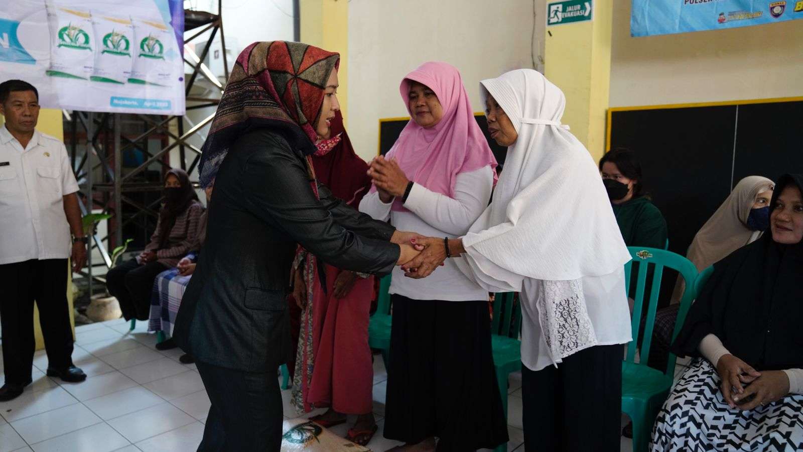 Turut hadir mendampingi Ning Ita dalam penyaluran bantuan pagi ini adalah Kepala Dinas Sosial, Pemberdayaan Perempuan dan Perlindungan Anak (DinsosP3A) Choirul Anwar, Camat Kranggan Suharno Lurah Purwotengah M. Rifai serta Kepala Pincab Bulog Surabaya Selatan Lela Nurita dan perwakilan dari Kantor Pos Mojokerto.